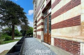 A ce bien atypique, s’ajoutent un grand jardin privatif avec appentis, une cour sur l’arrière et le côté et deux places de parking.