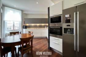 Cette maison de 372 m² entièrement rénovée mais ayant gardé ses éléments d’époque : carreaux de ciment, parquets en pin massif, cheminée en marbre et escalier d’origine en fer forgé, idéalement située en fait un bien unique.