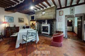 Au rez-de-chaussée : entrée, escalier en granit, salon avec cheminée, salle à manger avec cheminée/poêle à bois émaillé et son potager, cellier sous escalier, cuisine indépendante avec cheminée et un accès garage/buanderie.