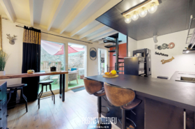 – au 1er étage : cuisine aménagée et équipée, salon/séjour avec poêle à bois suspendu avec accès à la terrasse,