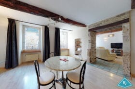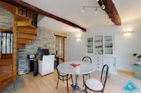 L’étage baigné de lumière comprend un wc, un salon et une salle à manger et une cuisine indépendante et équipée.