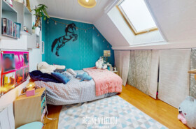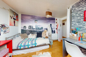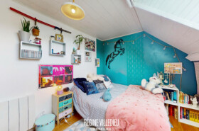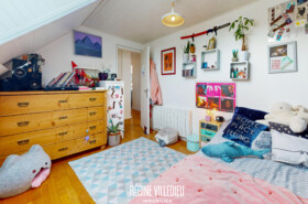 Au 2ème étage: deux chambres, un bureau, une salle de bain.