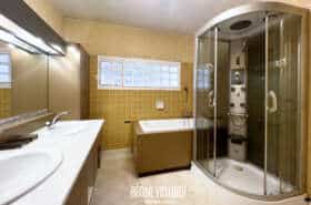 Disposée sur 3 niveaux vous trouverez une entrée distribuant une salle de bain avec baignoire et douche, le garage avec sa porte motorisée, un séjour/salon,