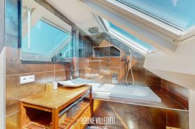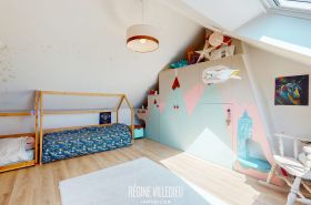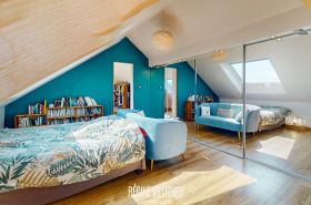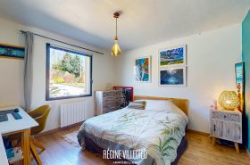 Au premier étage : deux chambres dont une avec une salle de bain et dressing, l’autre avec sanitaire.