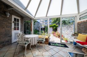 Au rez-de-chaussée : Entrée avec placard ouvrant sur un salon avec cheminée, salle à manger, cuisine aménagée, véranda, sanitaires.