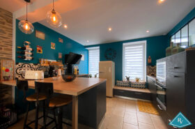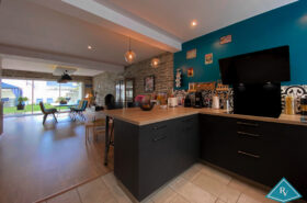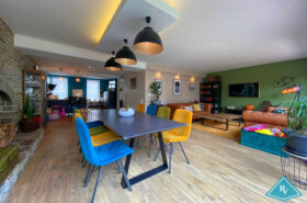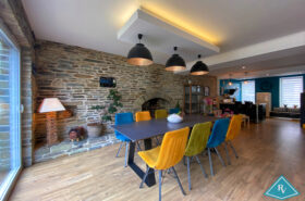 Rez de Chaussée : l’entrée vous incite à découvrir cette magnifique pièce de vie d’environ 60 m², entièrement relookée avec goût. Vous trouverez une cuisine américaine aménagée et équipée, la salle à manger avec un mur en pierres et le salon d’où vous apprécierez la vue sur le jardin, sanitaires.