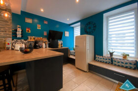 Accolé à la maison, le garage avec porte sectionnelle motorisée vous permettra de ranger une petite voiture. L’aménagement du garage permet aussi d’avoir la buanderie et la chaudière à portée de main. Gros plus de cette maison le jardin clos de murs avec ses 2 terrasses.