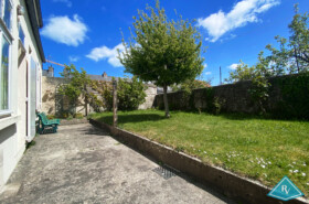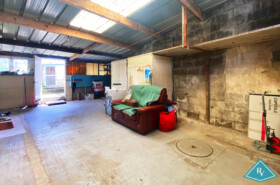 A l’arrière de la maison le petit jardin clos de murs, avec pelouse, est orienté plein sud. Un grand garage avec sanitaire indépendant mitoyen complète la propriété.