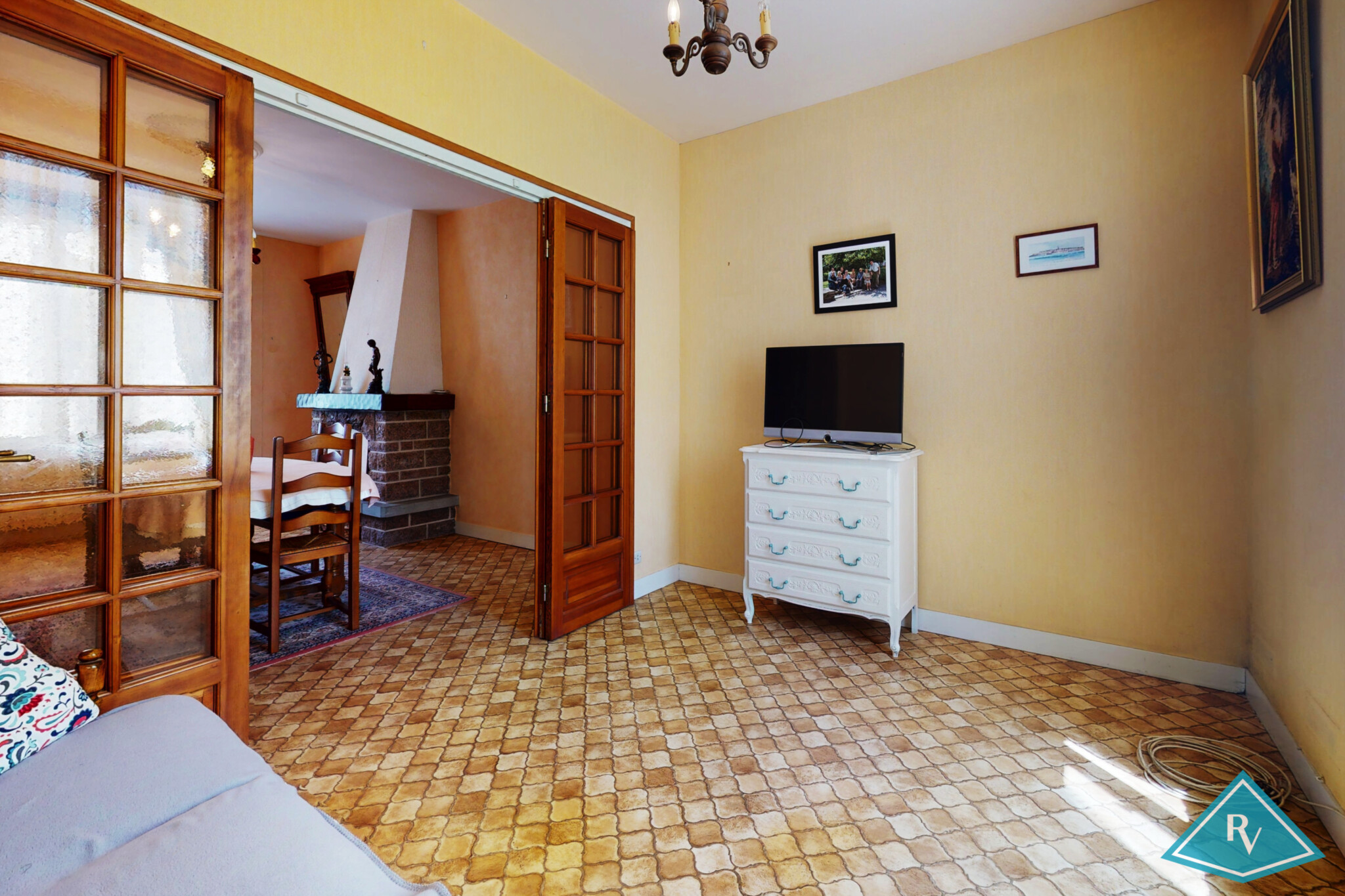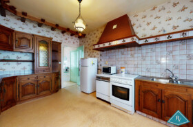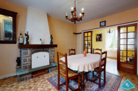 Au rez de chaussé : Un hall d’entrée avec placard sous l’escalier vous accueille, suivi d’une grande cuisine aménagée et d’une arrière-cuisine dotée d’une douche et d’un lavabo, ainsi qu’un sanitaire indépendant. Le séjour/salon dispose d’une cheminée en granite.