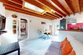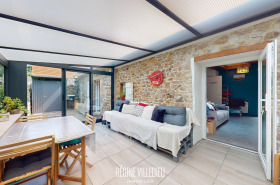 Terrasse sur le devant avec un abri de jardin, et une dépendance en pierres complétent ce bien. Le tout sur une terrain d’une superficie de 350 m², clos, arboré et bien exposé.