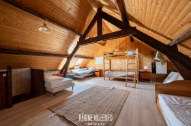 Le 2ème étage offre un grenier mansardé aménagé en vaste dortoir, avec un point d’eau, parfait pour accueillir famille ou amis.