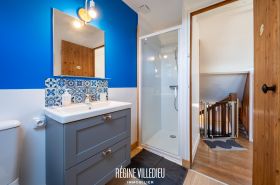 À l’étage, trois chambres accueillantes et un WC supplémentaire permettent d’héberger confortablement les invités.