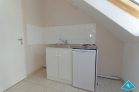 – Séjour avec placard et coin cuisine équipée d’une plaque électrique 2 feux et d’un réfrigérateur,