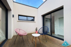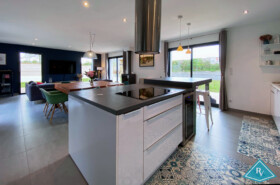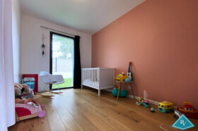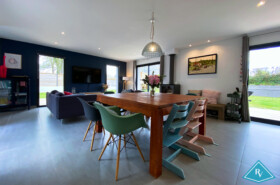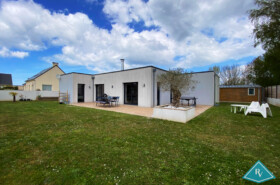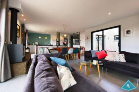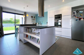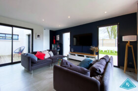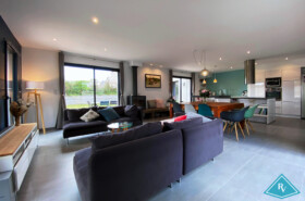 Belle maison cubique aux prestations soignées avec 3 chambres et grand séjour lumineux.