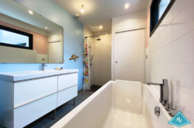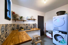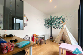 Le hall d’entrée dessert une première chambre qui est une suite parentale avec sa salle d’eau et son dressing et un vaste séjour/salon lumineux ouvert sur la cuisine aménagée et équipée moderne. Dans cette pièce de vie, on retrouve un accès à une zone bureau, un patio, 2 belles chambres, une salle de bain (Douche et baignoire) avec WC.