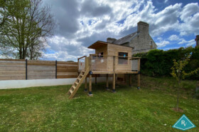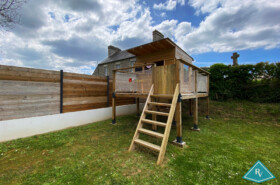 A l’extérieur, le terrain est clos et n’a pas de vis à vis. Un cabane fera le plaisir des enfants. On retrouve également une vaste terrasse bien exposée. Sur l’avant se trouve un parking bitumé.