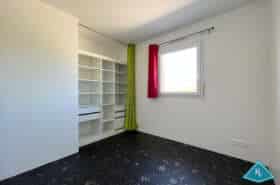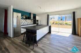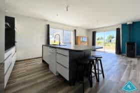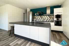 Une entrée donnant sur le séjour/salon avec une cuisine équipée aménagée, 3 chambres, une salle de bain, WC.