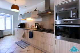 - Equipement cuisine : Meubles de cuisine, hotte, four, plaques de cuisson.