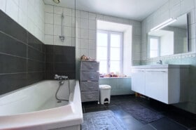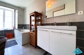 – Au 1er étage : grand salon avec parquet, salle de bain, chambre, bureau ou dressing, sanitaires,