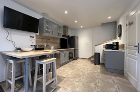 - Équipement cuisine: Plaque de cuisson, hotte, four, micro-onde, réfrigérateur, lave-vaisselle